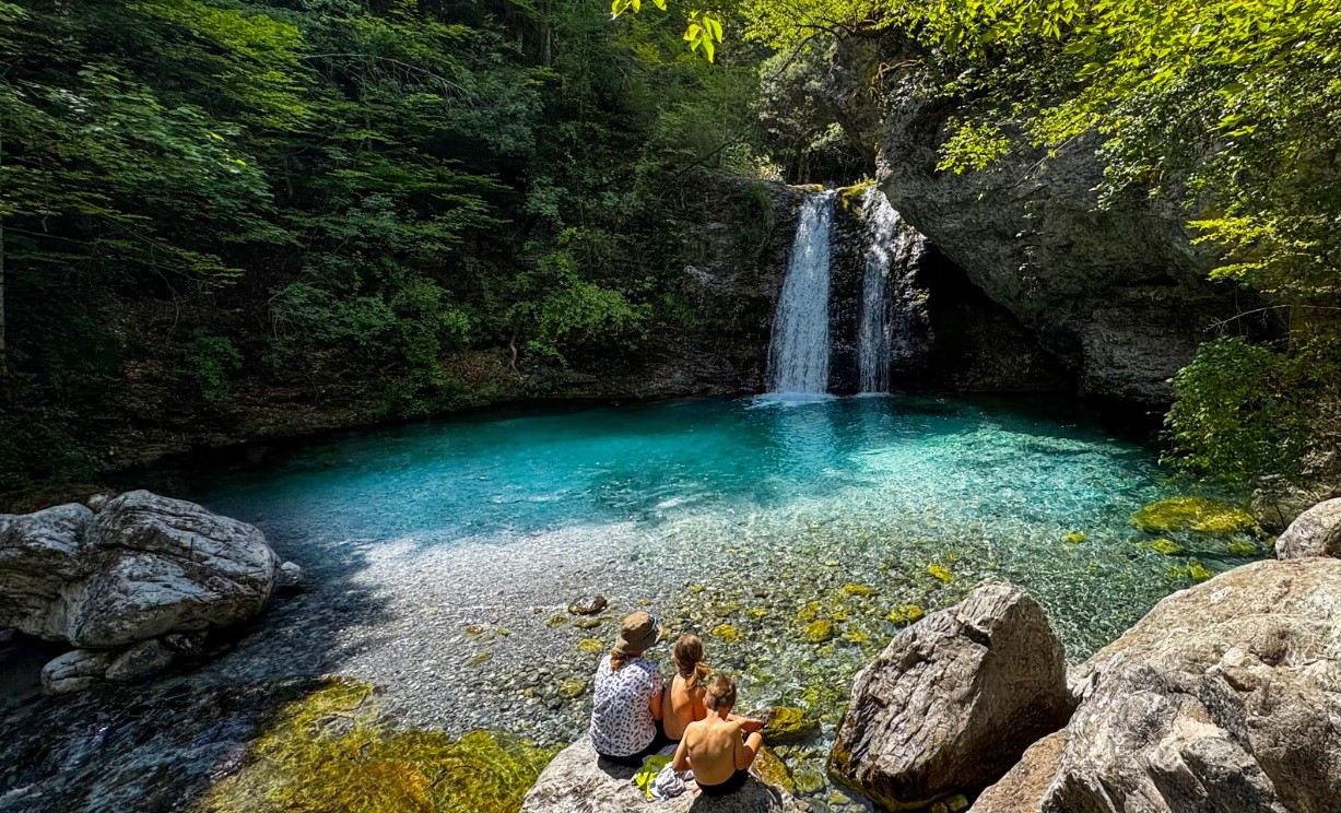 Vydali sme sa na trasu z Priónie do kláštora sv. Dionýza, čo je skvelý spôsob, ako preskúmať horu s deťmi. Trasa zahŕňa aj prechádzku okolo vodopádov a trvá zhruba tri hodiny. Nezabudnite si so sebou vziať plavky a uteráky pre prípadné kúpanie v tôniach.