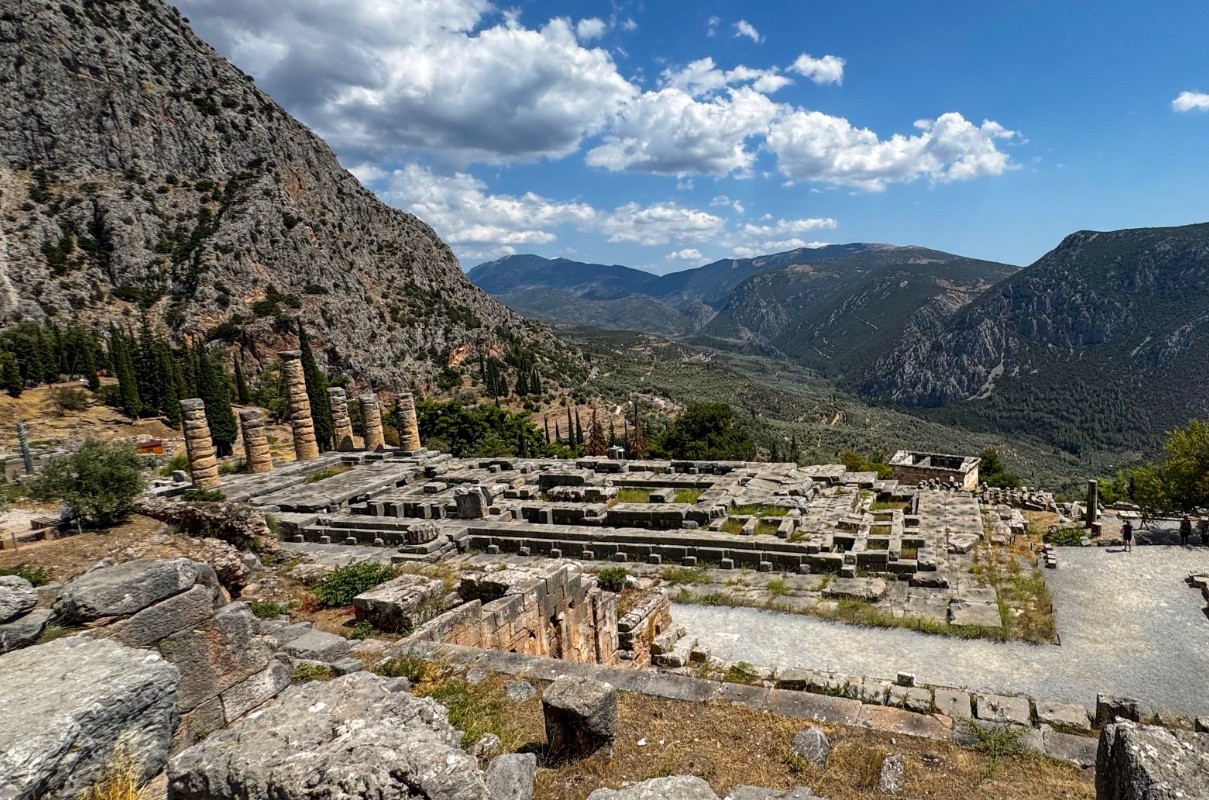 Vďaka svojej polohe na svahu hory ponúka Delfy nádherné výhľady do údolia rieky Pleistos a na olivové háje, ktoré sa rozprestierajú až k moru. Táto pôsobivá panoráma bola v minulosti pravdepodobne súčasťou spirituálneho zážitku pre návštevníkov svätyne.