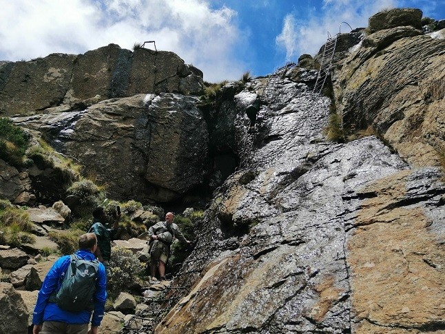 Rozhodne nie! (smiech) Nie som práve „young and sporty“… Mentálne sme síce všetci boli v skvelej kondícii, fyzicky už to ale bolo horšie, len kolega Fanda je vo forme. Ani jeden z tých výstupov nebol jednoduchý. Jednoducho povedané, Tugela je vodopád, ktorý si musíte zaslúžiť. Ale práve to je na tom to pekné. Z diaľky vodopád vidíte už z dvanástich kilometrov, pokiaľ máte šťastie na počasie. Ale dôjsť k jeho päte alebo až na hranu, to je drina. Cestou prekonávate asi 500 výškových metrov, šplháte po reťazových rebríkoch, leziete roklín, často aj vodou. Väčšina ľudí tam chodí veľmi dobre vybavená, majú špeciálne oblečenie, batohy so vstavanými fľašami na pitie… Ale my, my sme celú prvú cestu šli v sandáloch. (smiech)