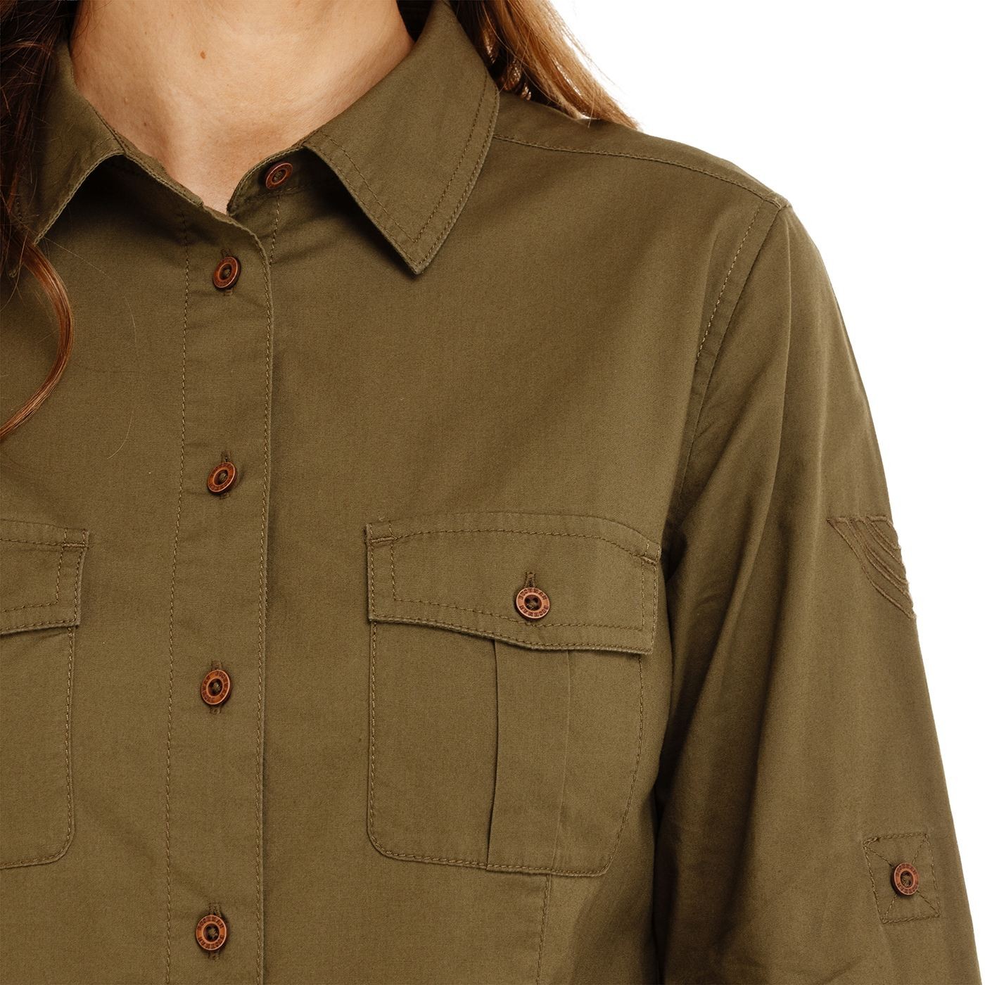Expedičná košeľa z ľahkej bavlny, ktorá je príjemná na nosenie a umožňuje pokožke dýchať. Dlhé rukávy je možné jednoducho vyhrnúť a upevniť gombíkom. Nechýbajú ani dve praktické náprsné vrecká a protizáhyb na chrbte pre voľnosť pohybu. Brandovo zdobené gombíky a jemná brandová výšivka na ľavom rukáve dopĺňajú čistý expedično-bushmanský vzhľad.