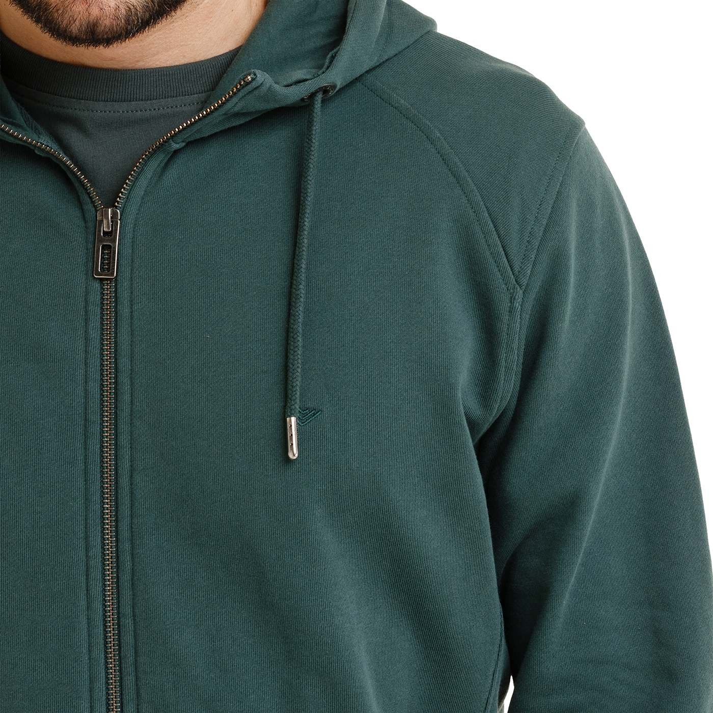 Bavlnená celozapínacia (kovový YKK zips) mikina v úprave cross loop fleece je pevná, ale mäkká a pohodlná. Kapucňa so sťahovaním na šnúrku s kovovým zakončením zvyšuje praktickosť, náplety na rukávoch a spodnom leme podčiarkujú štýl. Nechýbajú dve predné vrecká a drobná brandová výšivka na hrudi.