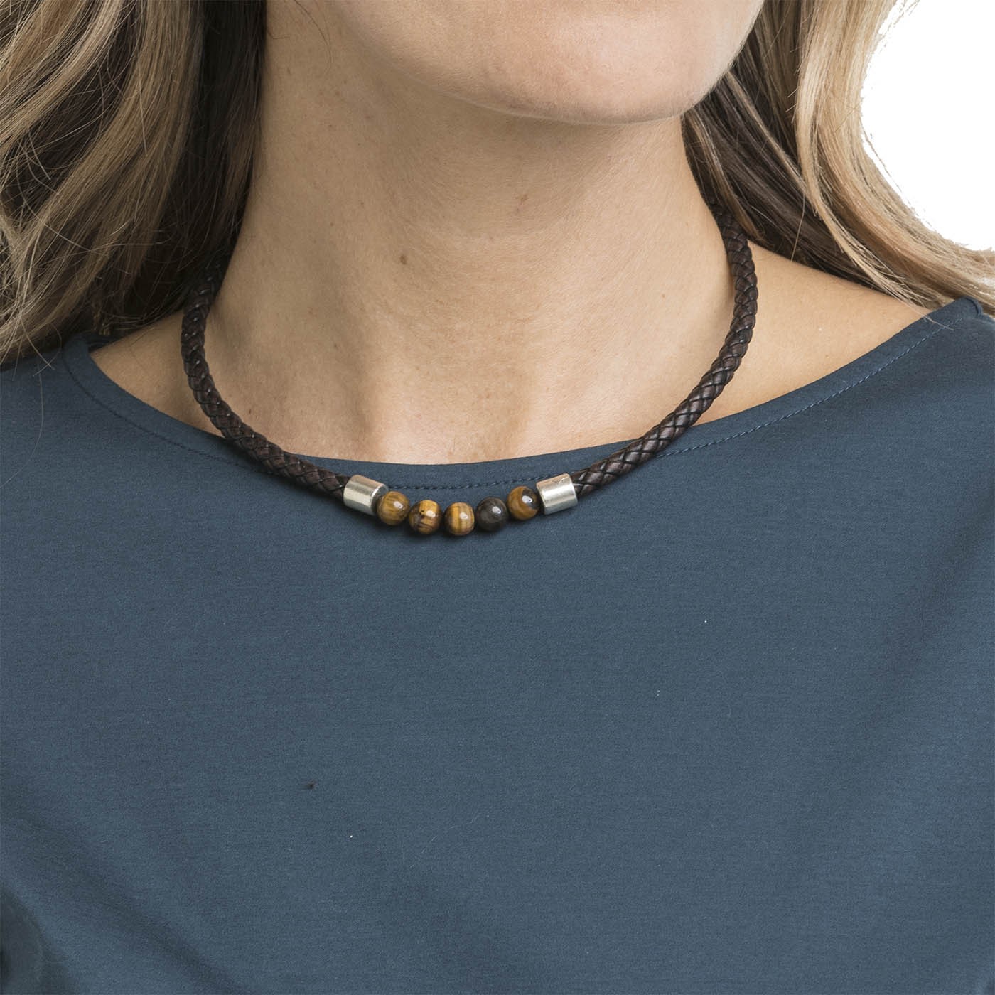 ULMI je tvoja osobná divočina v minimalistickom balení. Náramok je tvorený spleteným koženým pásikom (na ruke ho obtočíš na dvakrát - ale môžeš dať aj priechod kreativite a pripnúť si ho na krk ako náhrdelník) ozdobeným päticou prírodných kamenných korálikov oddelených malými „zarážkami“ zo zliatiny. Tie dodávajú náramku šmrnc a zároveň držia všetko na svojom mieste. Rovnaká zliatina je použitá aj na pracke, ktorá sa ľahko zapína a vydrží aj náročnejšie podmienky.