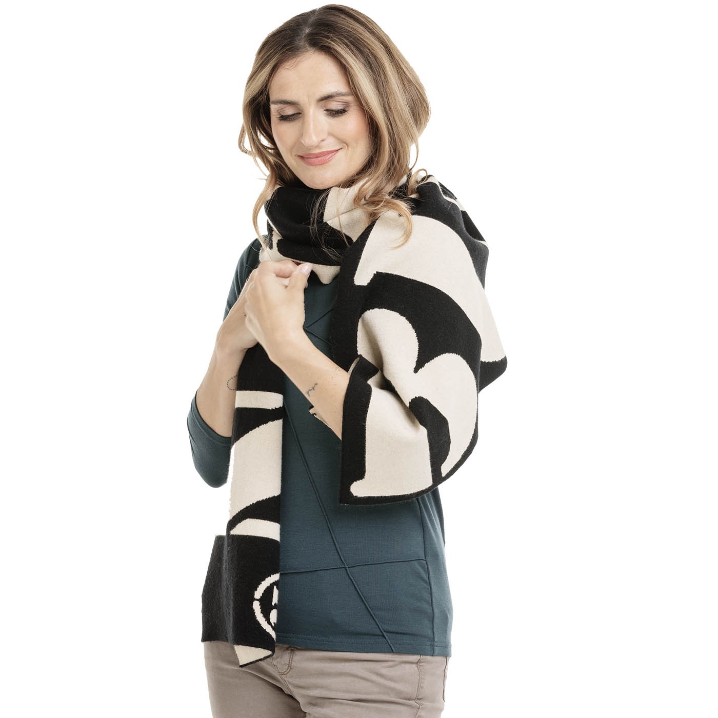 Štýl, teplo a pohoda v jednom – čierny šál WEWA s výrazným bielym brandovým nápisom ťa zahreje za každých okolností.