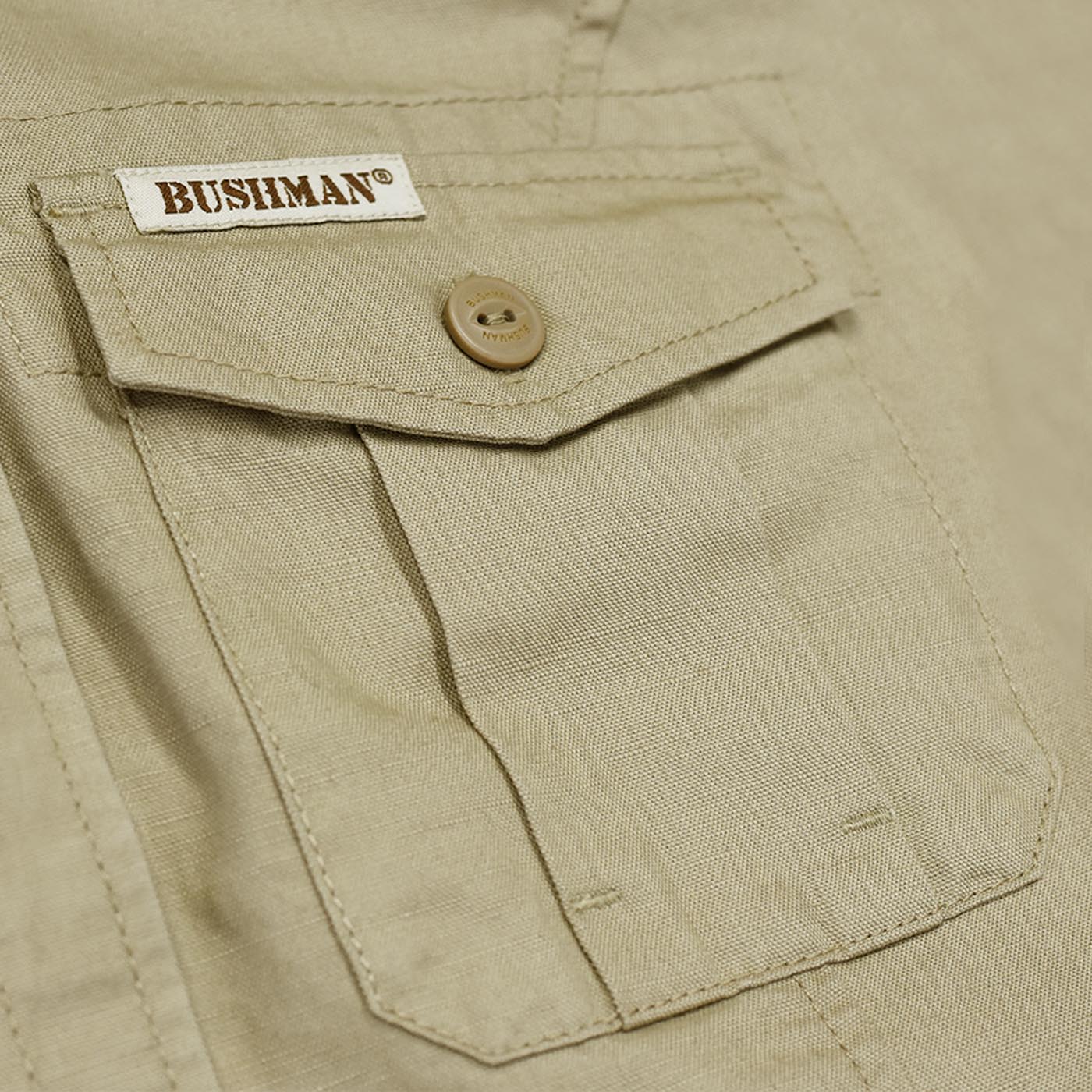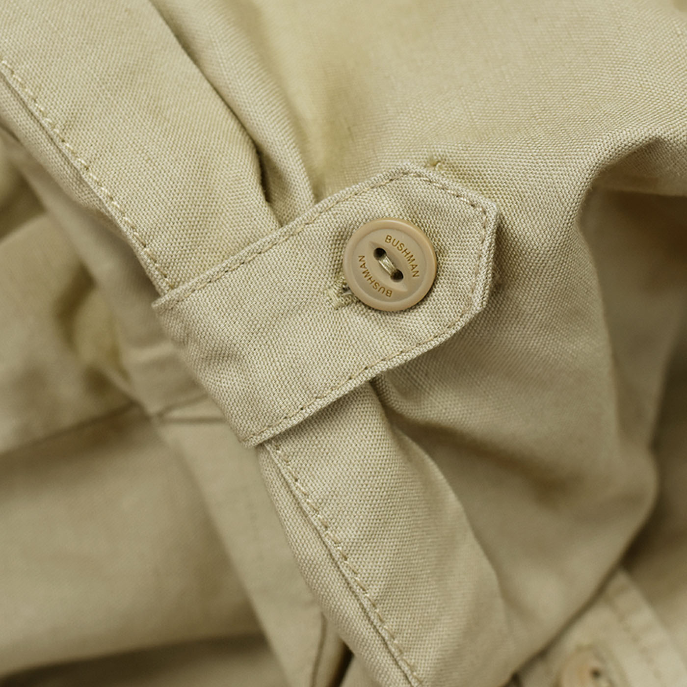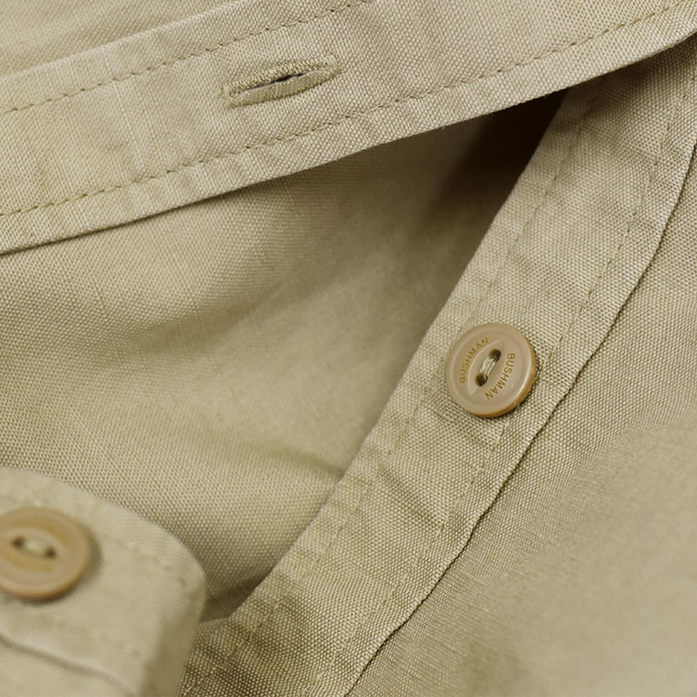 Pevné plátno utkané z kombinácie výberovej bavlny a kvalitného ľanu je mimoriadne vzdušné, priedušné a skvele saje pot. Silné enzymatické opranie a silikónová úprava už tak príjemný materiál ešte viac zmäkčuje. Enzýmy navyše spôsobujú, že sa na švoch utvorí autentická patina, typická pre oblečenie značky BUSHMAN. Safari design je veľmi neopozeraný a nápaditý. Návrhári firmy BUSHMAN si dali záležať, aby skĺbili atraktívny vzhľad s funkčnosťou.