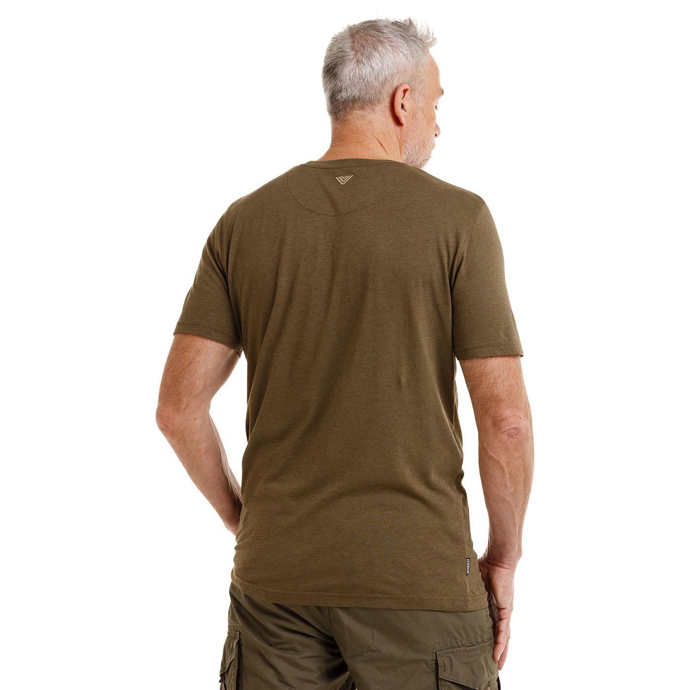 LASAL je univerzálne letné tričko, ktoré spája pohodlie, ľahkosť a nadhľad. Jemná zmes bavlny a viskózy ECO VERO™ je príjemná na dotyk, priedušná a dobre sa prispôsobí telu. Rovný užší strih skvele padne a krátky rukáv sa hodí aj na vrstvenie. Potlač Keep calm, Bushman style s motívom bushmana a leva pri spoločnom táborení prináša hravý pohľad na dobrodružstvo a pokoj v divočine. Brandová potlač na zadnom diele nenápadne dotvára autentický rukopis značky BUSHMAN.