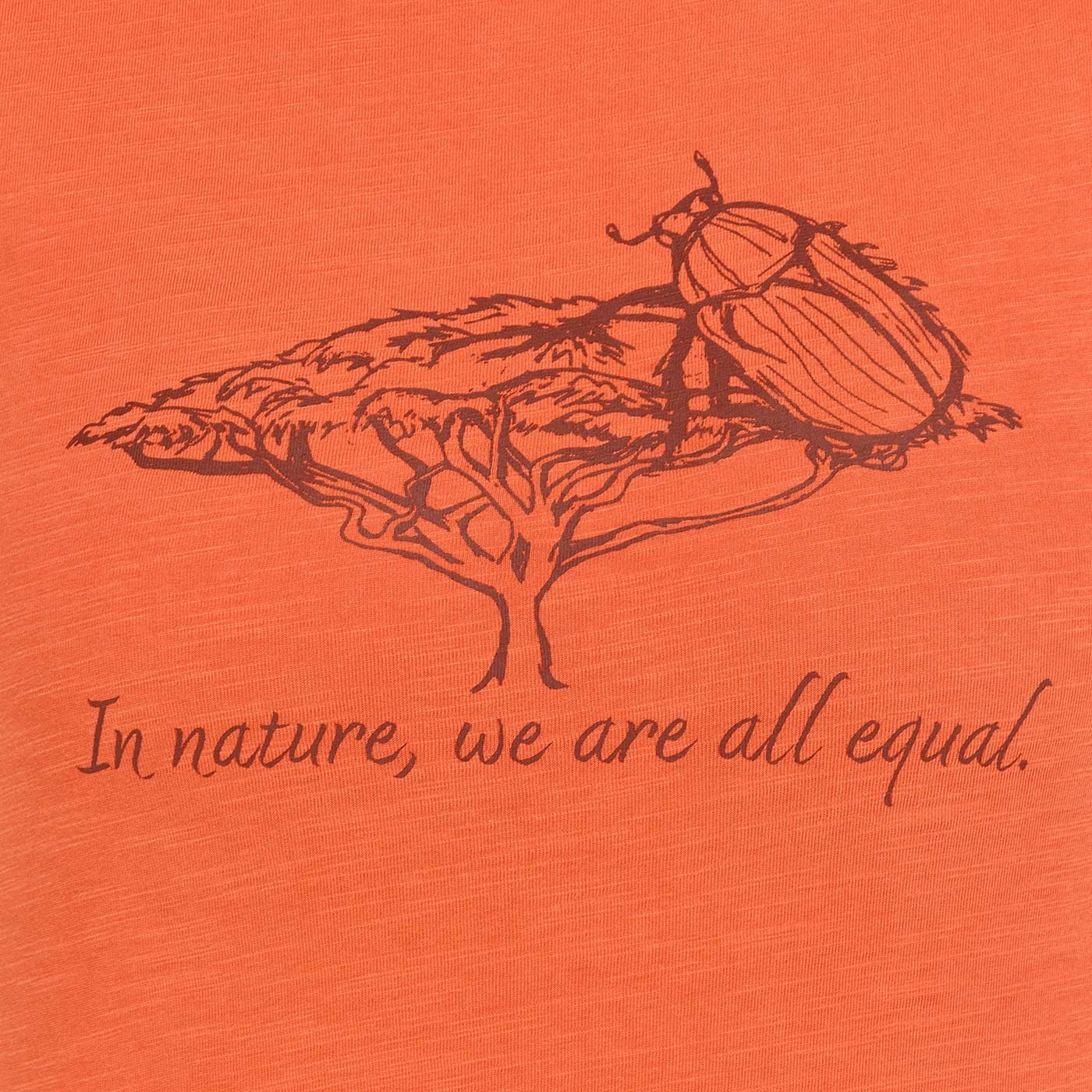 Tričko LAYLA v tomto variante nesie výrazný entomologický motív chrobáka, ktorý je doplnený jasným posolstvom In nature, we are all equal. Nenápadná, ale premyslená potlač pripomína, že aj drobné detaily majú v prírode svoje miesto a význam. Tričko tak pôsobí pokojne, civilne a zároveň nesie jasný odkaz úcty k prirodzenému poriadku sveta, ktorý je pre značku BUSHMAN typický.