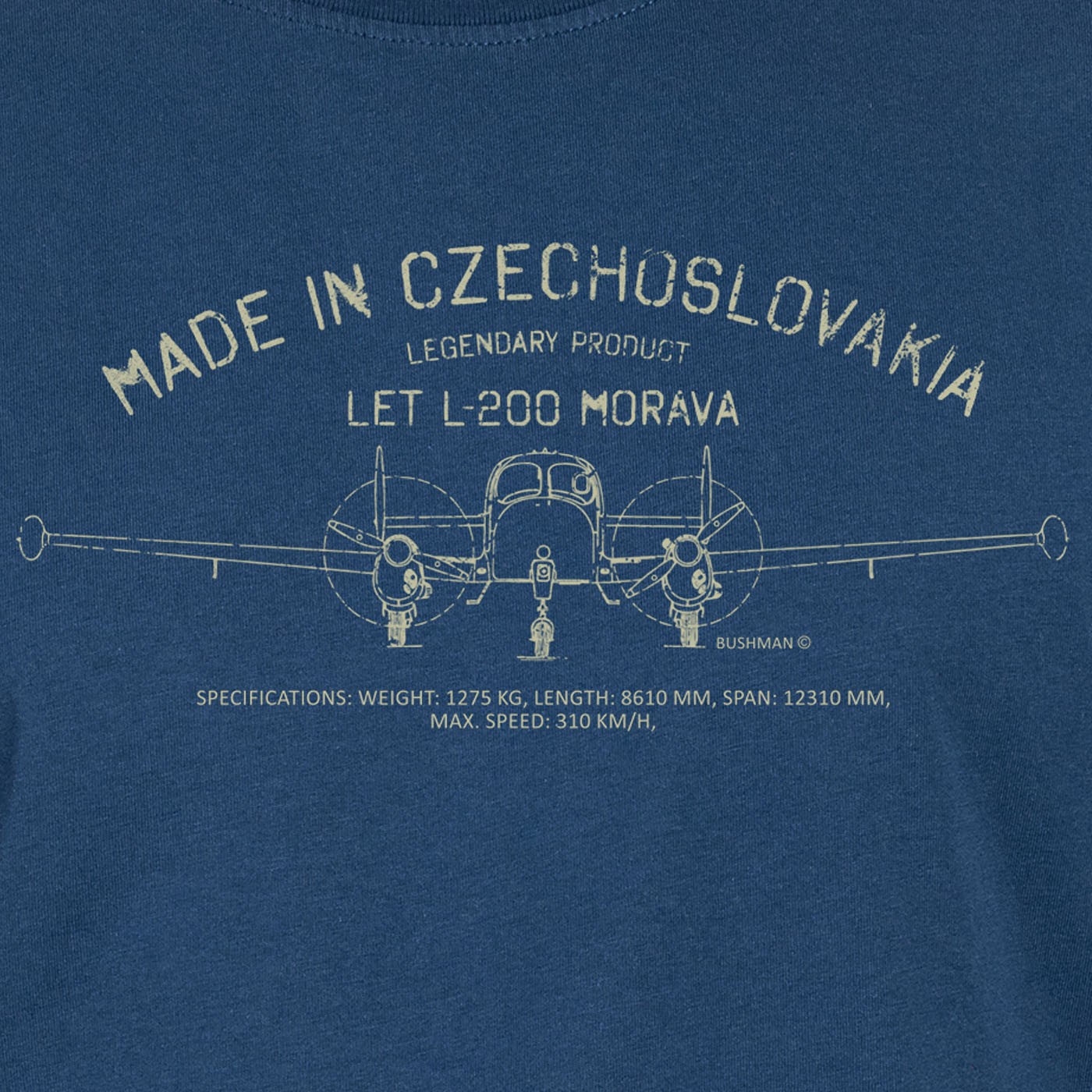 Vážime si veci, ktoré dobyli svet alebo srdce minulých generácií. Mal sa stať novým aerotaxíkom a jeho vývoj začal v budúcom Lete Kunovice v roku 1955. Dvojmotorový samonosný dolnoplošník Let L-200 Morava pre pilota a troch až štyroch cestujúcich je pre svoju obľúbenosť a kvalitu v súčasnosti využívaný najmä na vyhliadkové lety. Špeciálnou edíciou potlačí na týchto bavlnených tričkách s krátkym rukávom vzdáva BUSHMAN hold legendárnym produktom "made in Czechoslovakia". 100% bavlna, 180 g/m2, rovný strih.