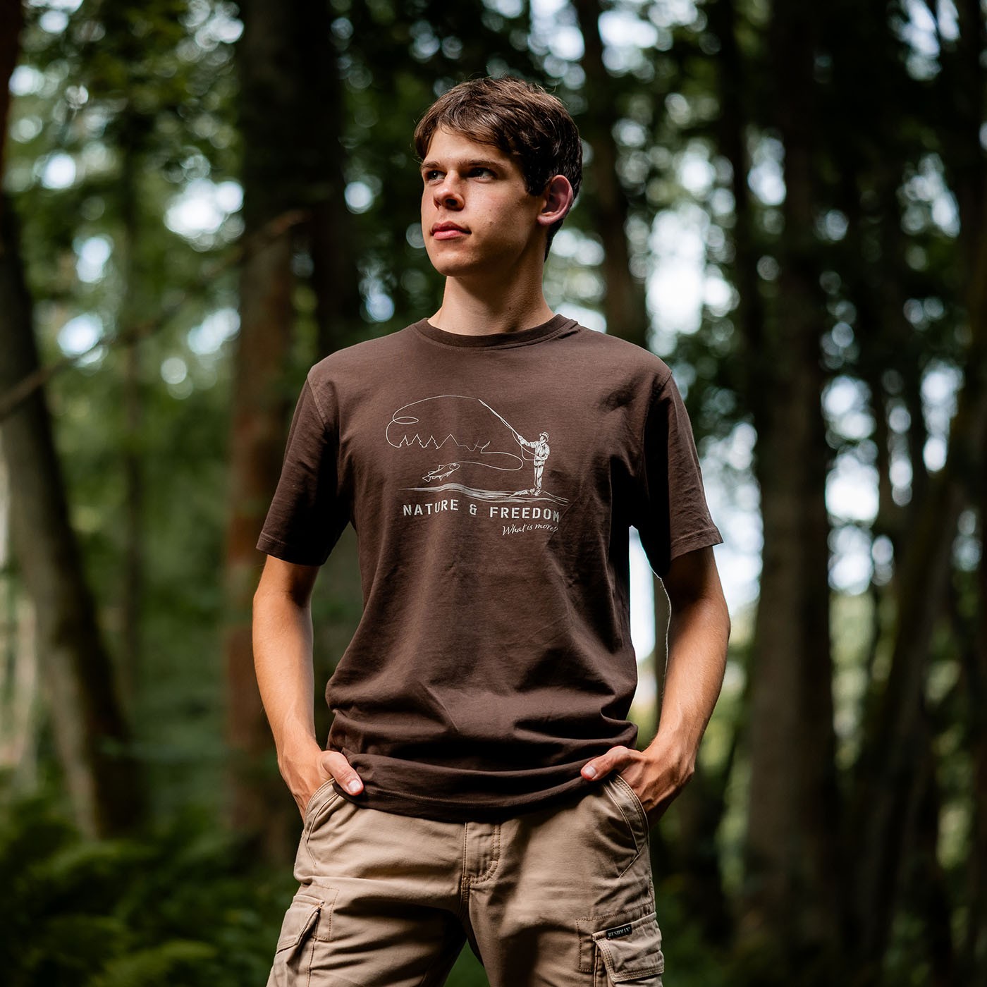 Z trička MATEJ priam srší energia! Kiežby nie - veď námetom potlače bol sám Matej Houška; náš milý ambasádor, vášnivý mladý rybár a dobrodruh. Nech slúži nielen rybárom, ale všetkým poriadnym bushmanom!