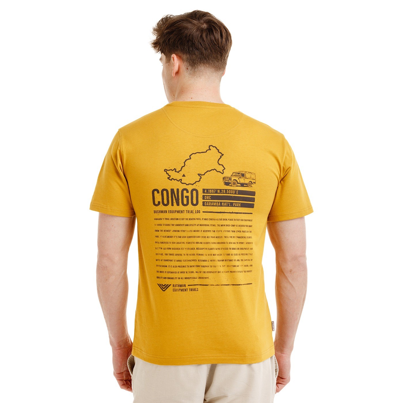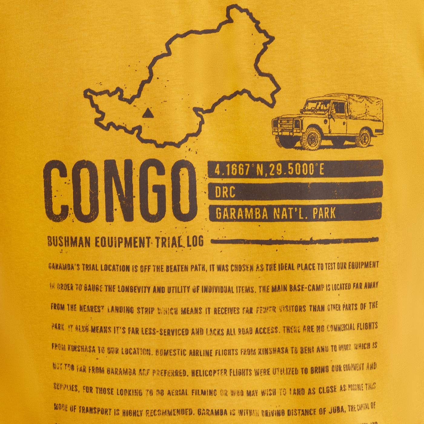 Na hrudi nájdeš drobnú potlač odkazujúcu k ceste naprieč Kongom, hlboko do Garamba National Park, na chrbte potom nechýba výrazný grafický motív s informáciami o náročnej trase a mieste, kde sa ide podľa vlastných pravidiel. Toto tričko je poctou skutočným výpravám, ktorých cieľom je cesta sama.